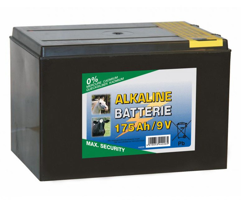 Jednorázová alkalická 9V baterie pro bateriové ohradníkové zdroje s kapacitou 175Ah.