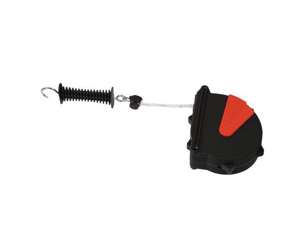 Inovovaný model samonavíjecího vchodu s vodičem lano o šířce 6mm a maximální délce 7,5m. Snadno se připevní na 2x vrut, který je součástí dodávky. Propojovací prvky nejsou součástí dodávky.