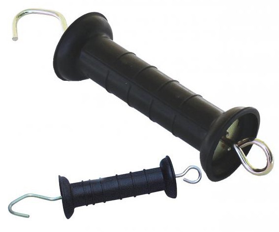 Branková rukojeť pro vchody do elektrických ohrad. Rukojeť se dá použít k instalaci na náhradní pružinu, nebo jen samostatné lanko či pásku. Pro spojení lanka nebo pásky s rukojetí využijte vhodné praktické spojky k tomu určené. Zamezíte tak ztrátám napětí, ke které může dojít špatnou instalací.