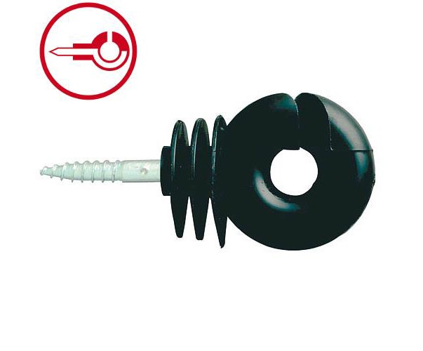 Kruhový izolátor pro el. ohradníky s vrutem, procházejícím celým tělem izolátoru. Vrut o průměru 6 mm zajišťuje vysokou stabilitu ukotvení.