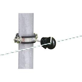 Objímka se montuje na kovové sloupky zahradních plotů a nedochází tak k narušení sloupku navrtáním. Do objímky lze našroubovat izolátory s metrickým závitem 6mm - M6. Používá se zejména u drátěných zahradních plotů pro elektrické ohradníky na psy a proti vniknutí divokých prasat.