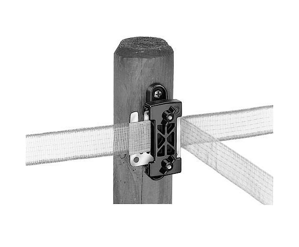 Konstrukce izolátoru pro pásky do 40 mm zcela vylučuje vyklouznutí pásky z izolátoru. V kombinaci s kovovými šrouby 8 mm jde o velmi robustní izolátor pro profesionální použití. Lze jej doplnit kovovou vložkou, která není součástí balení.