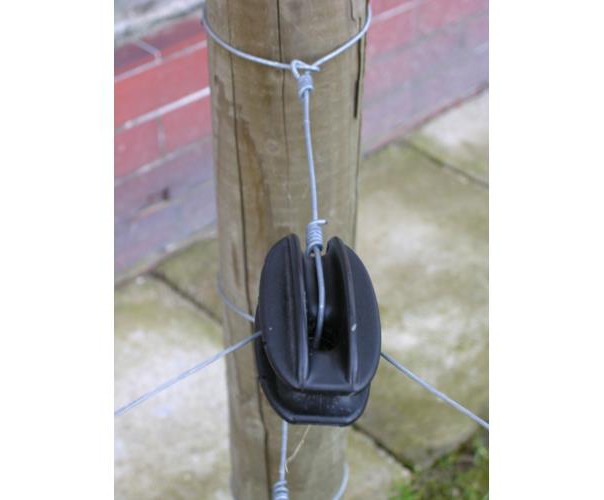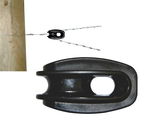 Izolátor pro stabilní ohradníky je robustní konstrukce. Je vhodný pro lanko, lano a drát do 100 kg. Tento izolátor pro ohradníky je určený jako rohový a napínací pro dráty, lanka, a lana do 6 mm. Jedním otvorem izolátoru se protahne vodič, druhým otvorem drát, který se připevní k rohovému nebo koncovému kůlu.