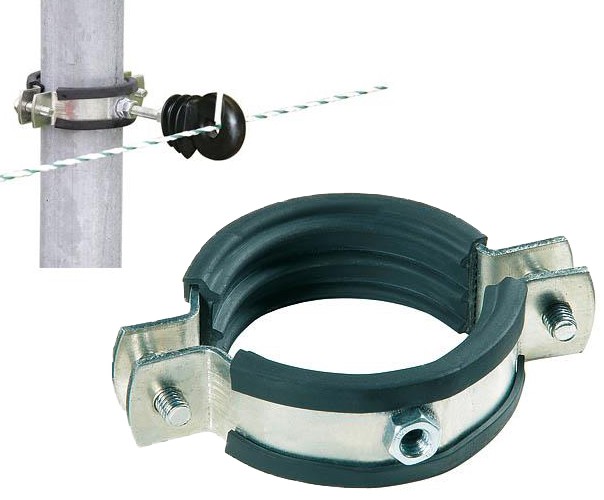 Objímka slouží k uchycení izolátorů pro elektrický ohradník například ke sloupku oplocení zahrady bez jeho narušení. Objímku lze namontovat na sloupky o průměru od 48 do 60 mm. Pro sloupky 60 mm se vyjme gumová vložka nebo lze vyměnit šrouby za delší.