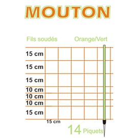 Na 50 m délky ohradníkové sítě pro ovce připadá 14 nosných plastových tyček s jednoduchou kovovou pozinkovanou špičkou.