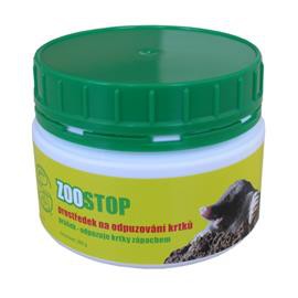 Odpuzovač krtků ZOOSTOP 200g - slouží k ochraně zahrad, dětských hřišť, spotovišť a podobných užitkových i komerčních ploch před nežádoucí činností krtků. Prostředek je sestaven tak, aby zamezil především činnosti krtků, ale lze použít i k zamezení nežádoucí přítomnosti psů a koček. Práškový přípravek odpuzuje krtky zápachem, avšak nijak nevadí člověku.
