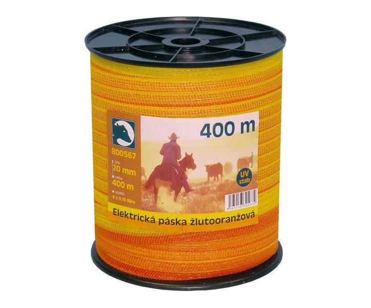 Nejčastěji používaná elektrická vodivá páska z řady STANDARD při stavbě krátkodobých sezónních ohrad. Vhodná na ohraničení pastvy, kde je dostatek trávy. Páska je dobře viditelná, má výraznou žluto oranžovou barvu. Páska má v sobě vpleteny 4 vodivé drátky, které jsou z nerezi. Pásku doporučujeme použít na menší ohrady do 400 metrů. Páska se používá na horní i spodní řadu ohrady.
