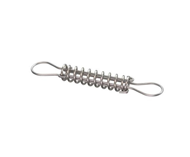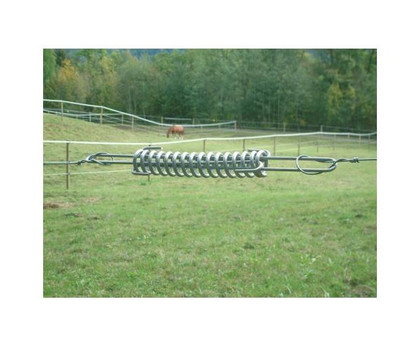 Dilatační pružina pro vodiče elektrických ohradníků o délce 200 mm, nerezová. Měkčí - pro ocelové lanko, hliníkový drát i pro PP lana.