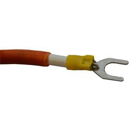 Z vysokonapěťového kabelu odstraňte obě izolace tak, aby bylo lanko asi 3 cm holé a vrchní izolace asi o 1 cm kratší než spodní. Lanko přeložte na půl a vsuňte do dutinky spojky. Dutinku pak zmačknete kleštěmi tak, aby bylo spoj dostatečně pevný.