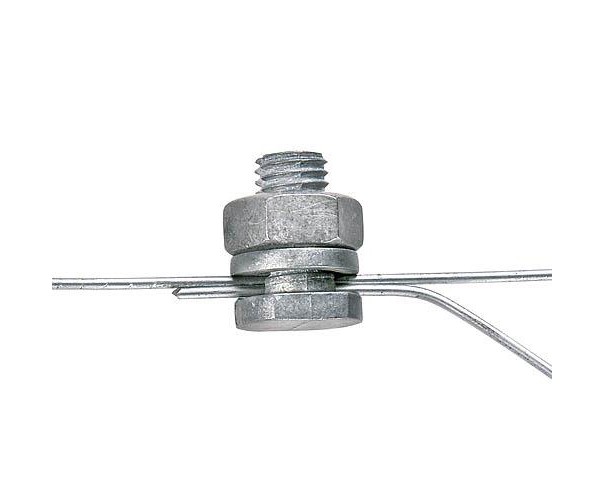 Spojka na drát se šroubem slouží k vodivému spojení drátů a kovových lanek. Není určena pro spoje, které jsou namáhány tahem. Při velkém utažení matice může dojít ke stržení závitu šroubu.