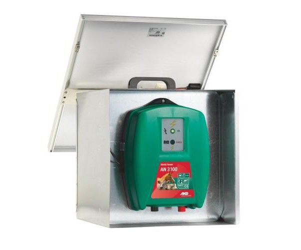 Zdroj energie pro elektrický ohradník ze sítě 230V nebo baterie 12 V, optická kontrola ohrady a stavu baterie. Baterie, kovová schránka ani síťový adaptér nejsou součástí dodávky.