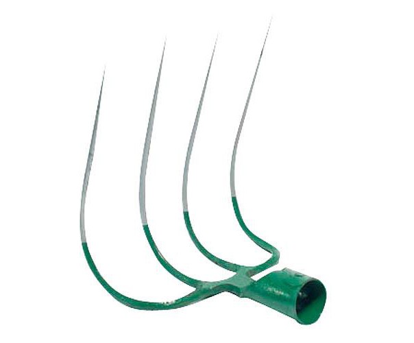 Kovový lakovaný kopáč na hnůj, slámu, seno.