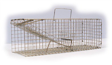 Sklopec vyrobený z drátěného pozinkovaného pletiva pro odchyt lasiček a hranostajů, norků, 1 dvířka; rozměry: š - 18cm, v - 18cm a délka je 50cm.