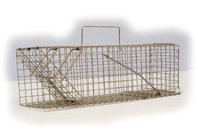 Sklopec vyrobený z drátěného pozinkovaného pletiva pro odchyt drobných hlodavců s 1 dvířky. Rozměry: délka 49cm, šířka 12cm, výška 14cm.