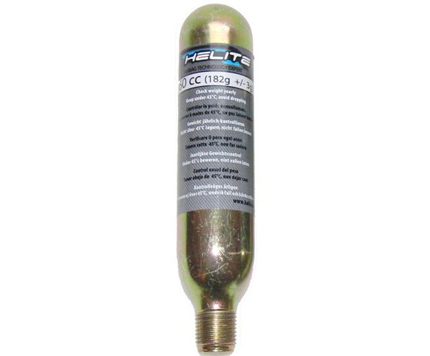 Bombička do airbagové vesty Helite, CO2 plyn, 60CCM. Bombička slouží k "odpálení" vesty v případě pádu. Musí být dobře připevněna a připojena k systému, aby byla správně funkční. HELITE nabízí 3 rozdílné velikosti CO2 bombiček přizpůsobené k velikosti těla. CO2 plyn není nebezpečný (používá se pro hašení požárů) a je snadný k manipulaci.