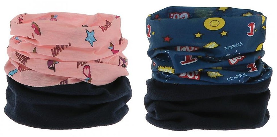 Multifunkční dětský nákrčník s veselým potiskem. - lze použí např. jako šátek, čelenka, kukla atd. - materiálové složení: kombinace polarfleecu a polyesteru - možno prát v pračce na 30 °C