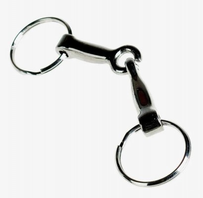 Klíčenka s motivem kroužkového stíhlového udidla.