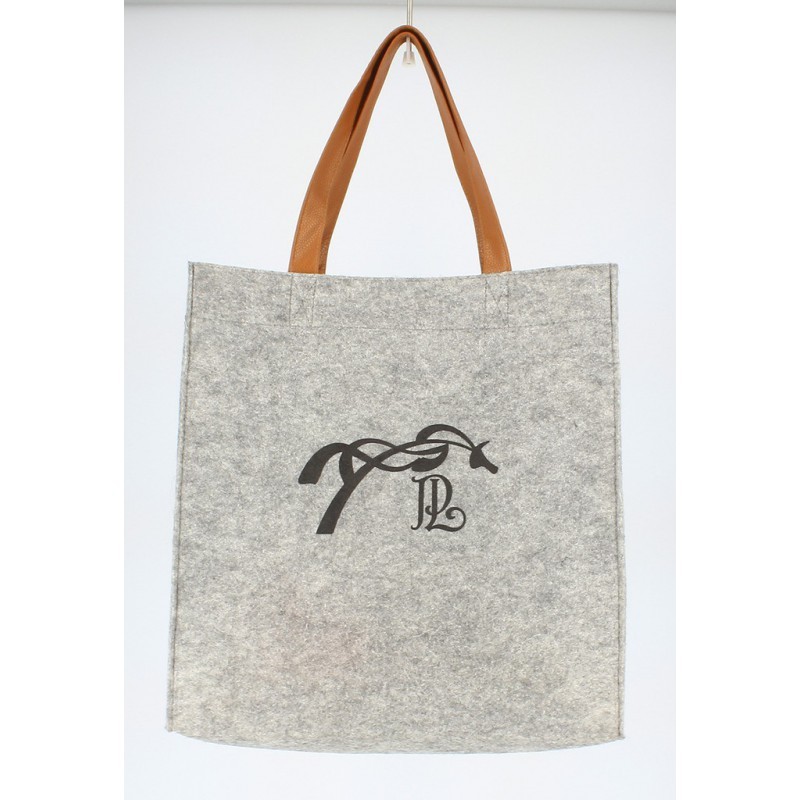 Plstěná nákupní taška s uchy ze syntetické kůže zdobená logem PENELOPE se siluetou skákajícího koně na obou stranách.