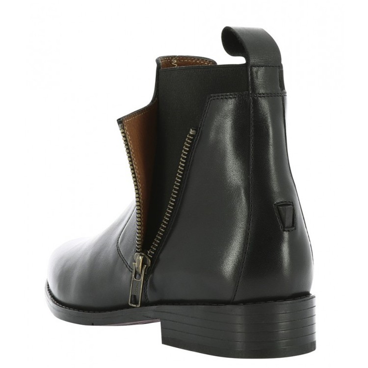 Jezdecká perka vyrobená z pravé kůže značky Equitheme mají na obou stranách zipy. Elastické vsadky umožňují lepší napasování. Výplň je z vepřové kůže, vložka je vyjímatelná z EVA pěny a je dvojitě zesílená v oblasti paty.