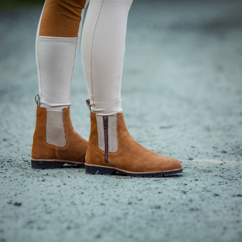Stylová jezdecká semišová perka s postranním zipem pro snadnější obouvání