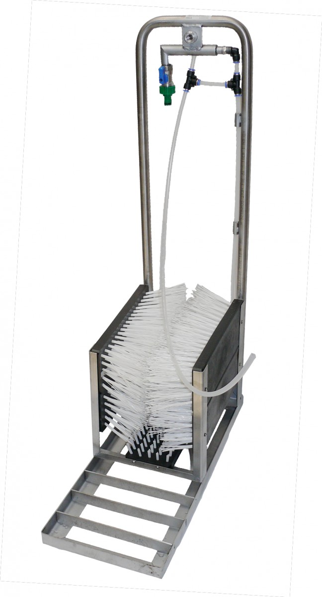 Nerezová konstrukce s 5 plastovými kartáči na mytí silně znečistěných gumových bot se spodní rohoží, 1/2" rozvodem vody s tryskami a uzavíracím kohoutem. Je vybaven přisávací hadicí na desinfekci či mycí roztok.K provozu zařízení je potřeba vodovodní přípojka o min.tlaku 2 atm.. Rozměry: 23x54cm, výška 86cm.