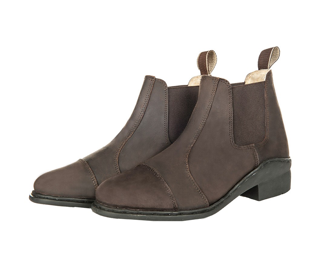 Vyosce hřejívé kožené pérka s protisklzuzovou podrážkou a vsazenými elastickými klíny, pro pohodlnější obouvání a zouvání. Celá vnitřní část boty je vypolstrována syntetickým teplým beránkem. Bota je kožená, vyrobená z pravé olejované kůže, která odpuzuje vodu a nečistoty. Barva bot hnědá. Pěkné boty na ježdění i do stáje, za rozumnou cenu.