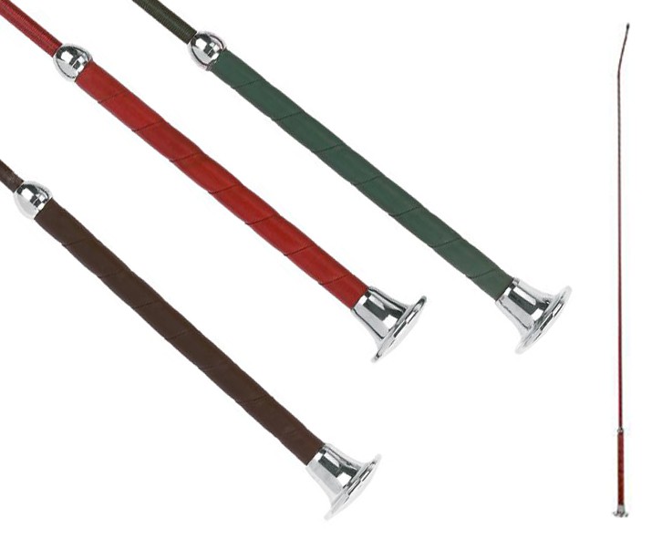 Velice kvalitní elegantní jezdecký drezurní bič (tušírka) s koženou rukojetí a kovovými koncovkami. Sklolaminátový prut opletený nylonem a zakončený šlehounem. Jezdecké drezurní biče jsou dlouhé a jejich výhoda tkví ve snadném dosažení za holeň, jejíž pobídky mají zesilovat. Jezdci to dává možnost bič použít s minimálním pohybem rukou a tedy i s minimálním rušením koně. Vhodné nejen pro drezurní výcvik.