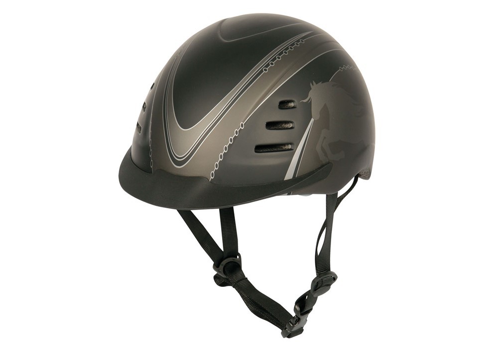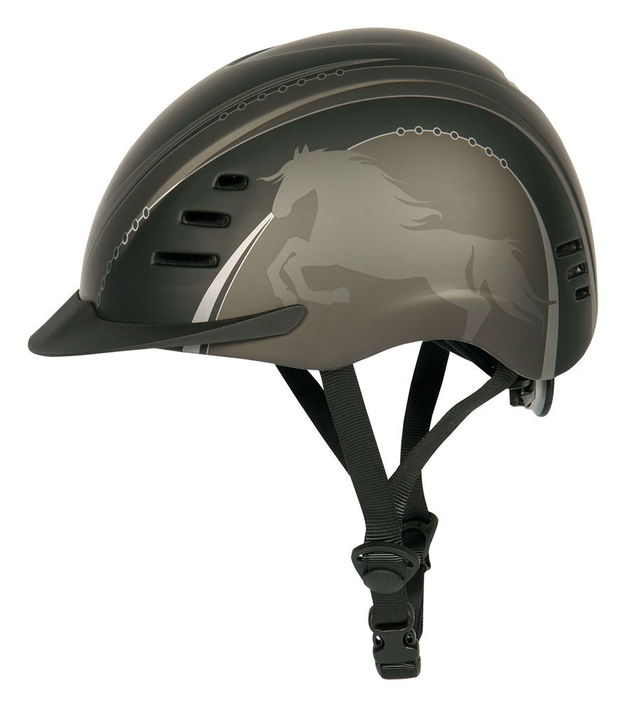 S odvětrávacími otvory, nastavitelná vzadu na kolečko, po stranách potisk koní.