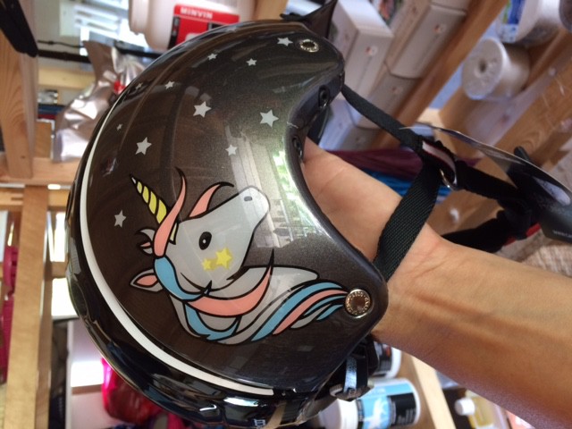 Dětská bezpečnostní přilba s potiskem Unicorn značky Casco. Přilba splňuje aktuální normu VG1 01.040 2014-12.