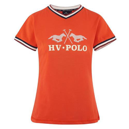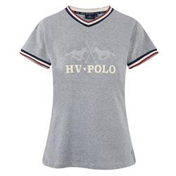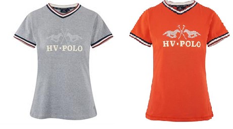 Výstřih do V, kontrastní lemy u rukávů a u krku, stříbrná aplikace a bílý nápis HV Polo, 83% bavlna, 12% polyester, 5% elastan.