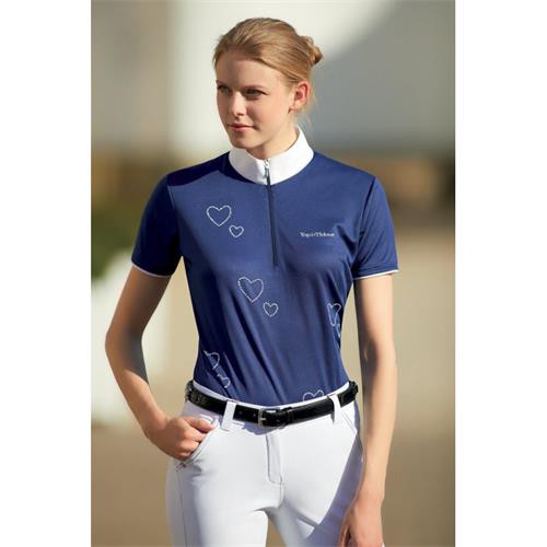 Dámské závodní triko v modré barvě s potiskem bílých srdíček.