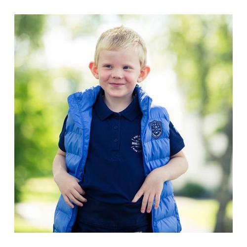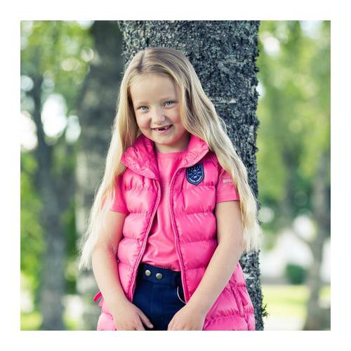 Sportovní dětská vesta Horze Luna v pěkných, plných barvách s logem firmy na levé straně.