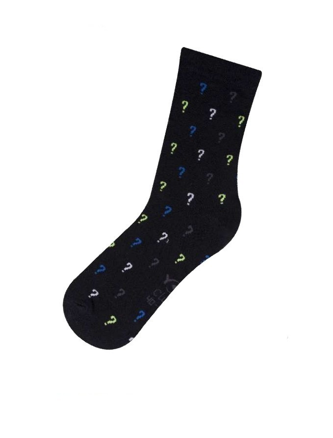 Pánské vzorované ponožky s motivem otazníků. Materiálové složení: 80% bavlna, 15% polyamid, 5% elastan.