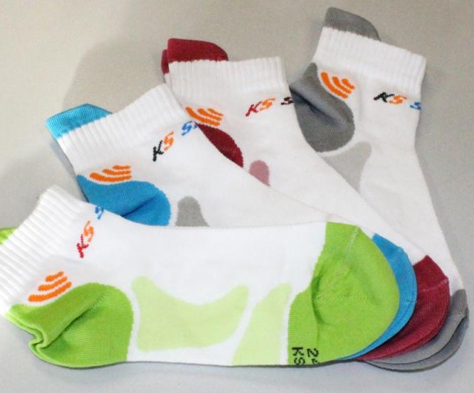 Dámské sportovní elastické ponožky KS LIGHT, snížené s límečkem. Ponožky bílé s barevným vzorováním.