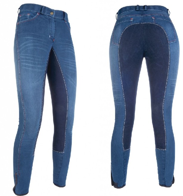 Dámské jezdecké rajtky z příjemného materiálu s vysokým podílem bavlny, celokoženým sedem a s ozdobným prošitím. Rajtky jsou elastické, rychle absorbují vlhkost, mají 2 přední a 2 zadní kapsy a poutka na opasek. Rajtka jsou moderní vzhledu s přilnavým střihem, který dobře sedne na postavu. Rajtky jsou příjemné na omak a působí jako rajtky jeansové, jsou ale výrazně jemnější a vzdušnější.