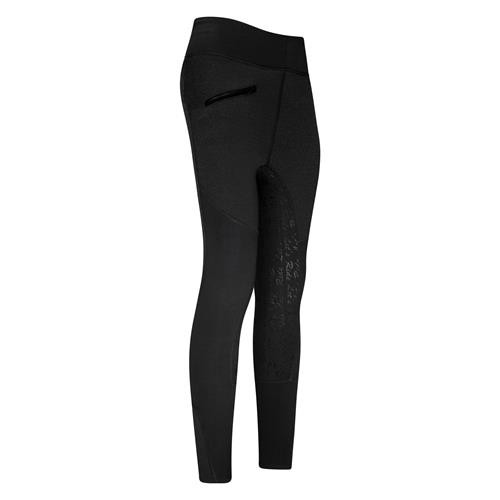 Luxusní jezdecké leginy s celogripy. Elastický materiál, velmi příjemné na tělo. Po straně kapsička na zip, v pase na zadní straně kapsička na pamlsky nebo jiné drobnější věci. Mírně vyvýšený elastický pás, nohavice ukončeny elastickou vsadkou. Materiál: 78,5 % polyamid, 21,5% elastan. možno prát na 30 C.