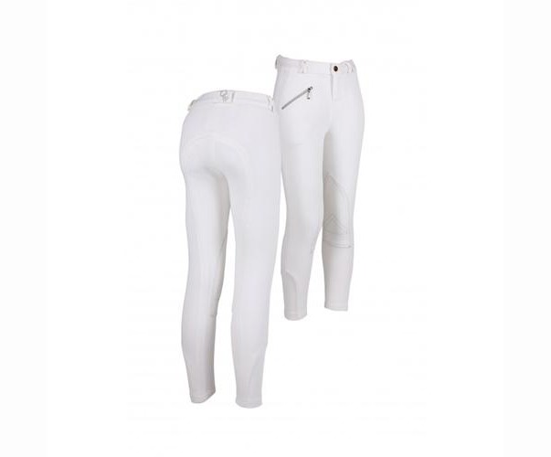 Základní dětské jezdecké kalhoty ukončené elastickou vsadkou u nohavic. Poutka na pásek, na pravé straně vpředu kapsa na zip. Logo QHP.