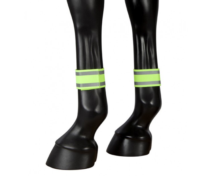 Reflexní pásky se zapínáním na suchý zip. Lze omotat kolem boty, ruky nebo nohy koně. Poskytují maximální viditelnost ve tmě. Pásky mají neonově žlutou barvu a dva reflexní proužky. Šířka 5 cm.