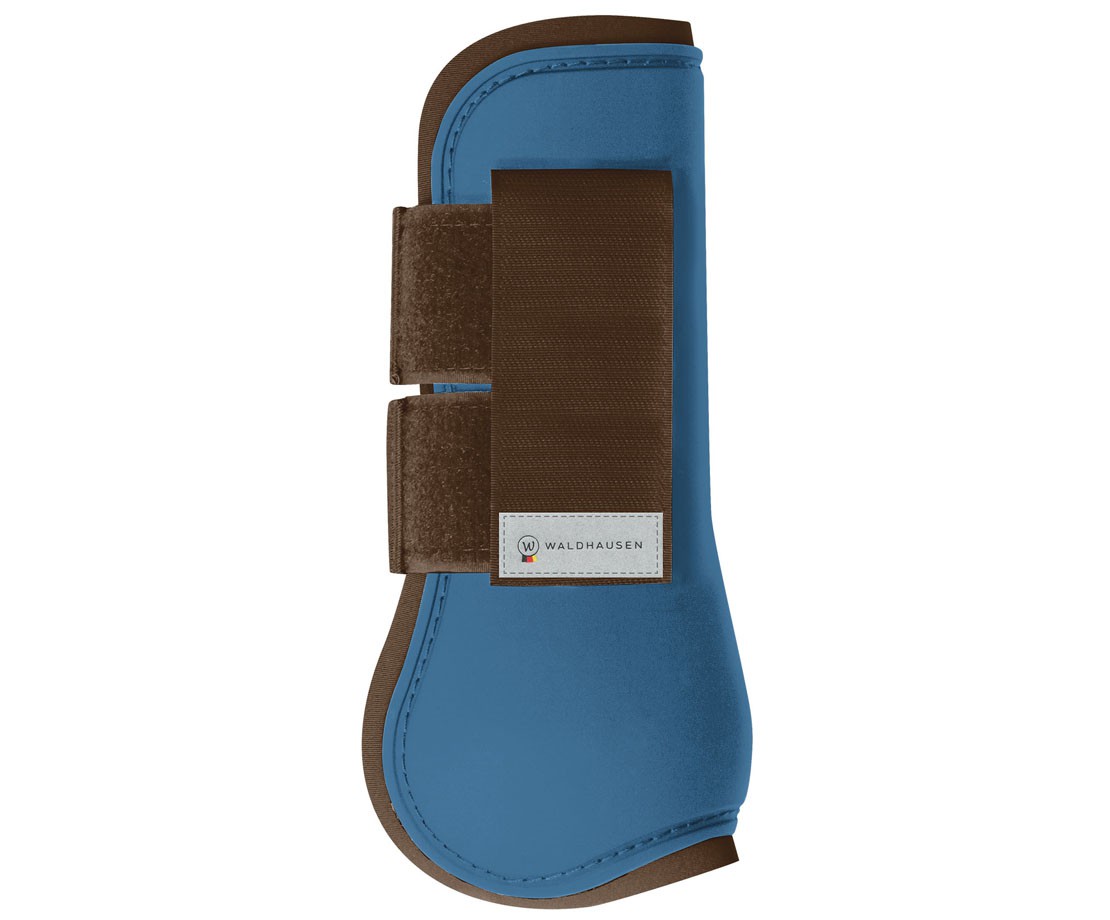 Přední šlachové chrániče z kolekce Esperia. Ideální ochrana předních noh Vašeho koně. Chrániče vyrobené z pevného ochranného materiálu, podloženého neoprenem, který tlumí a absorbuje nárazy. Zapínají se na dva zapínací a jeden krycí suchý zip, na kterém je logo Waldhausen.