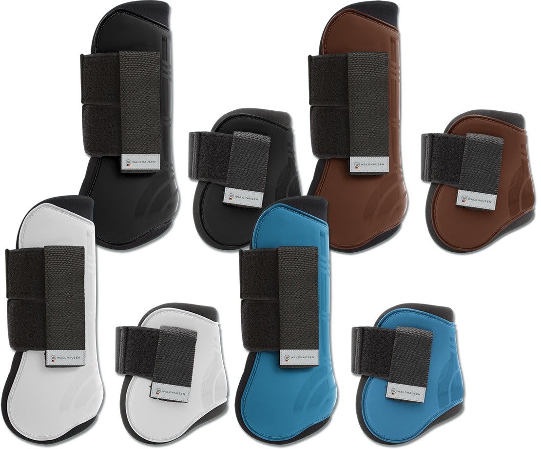 Velmi dobré a kvalitní skokové HiTech kamaše s anatomickým tvarem pro maximální pohodlí nohy v pohybu. Kamaše je uvnitř vypolstrována silným neoprenem, tlumí a absorbuje nárazy. Kamaše jsou jednoduché na údržbu, zapínají se na široké a pevné suché zipy s krytím druhého suchého zipu. Sada obsahuje chrániče na přední i zadní nohy.
