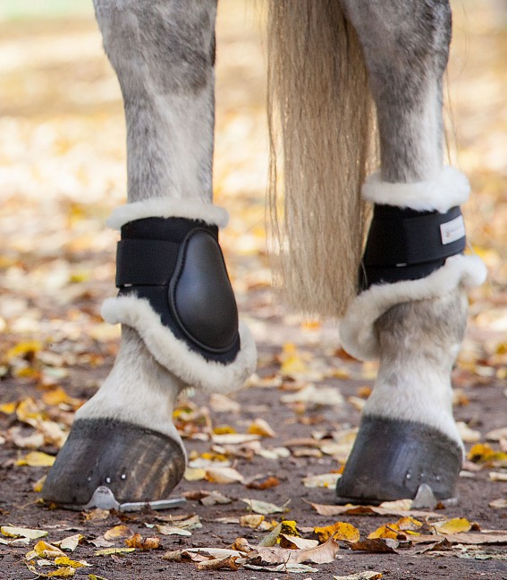 Dokonalá symbióza pravé jehněčí kůže a anatomicky tvarované skořepiny pro nejvyšší ochranu nohy koně. Široký pásek na suchý zip zajišťuje bezpečné uchycení na noze koně.