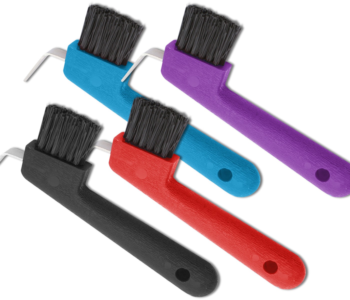 Háček na kopyta s plastovou rukojetí. Na jedné straně háček a na druhé kartáček pro odstranění nečistot a následnému dočištění.