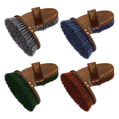 Dřevěný kartáč s umělým delším vlasem a koženým poutkem značky Kentaur v několika barvách.