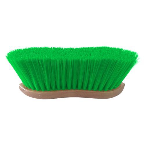 Rukojeť kartáče je dřevěná a anatomicky tvarovaná - dobře se drží v ruce. Délka a hustota štětin výborně vyčesává zbytky prachu z koně a „dolešťuje“. Kartáč s vysokým umělým vlasem 6,5 cm, dřevěným tělem délky 21,5 cm a šířky 6 cm.
