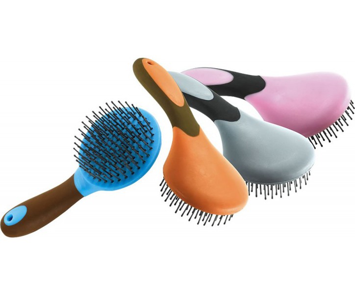 Kvalitní kartáč pro jemné rozčesání hřívy a ohonu s velkou kulatou hlavou z PVC, pružnými jehlicemi a plastovou rukojetí v pěkných barvách.