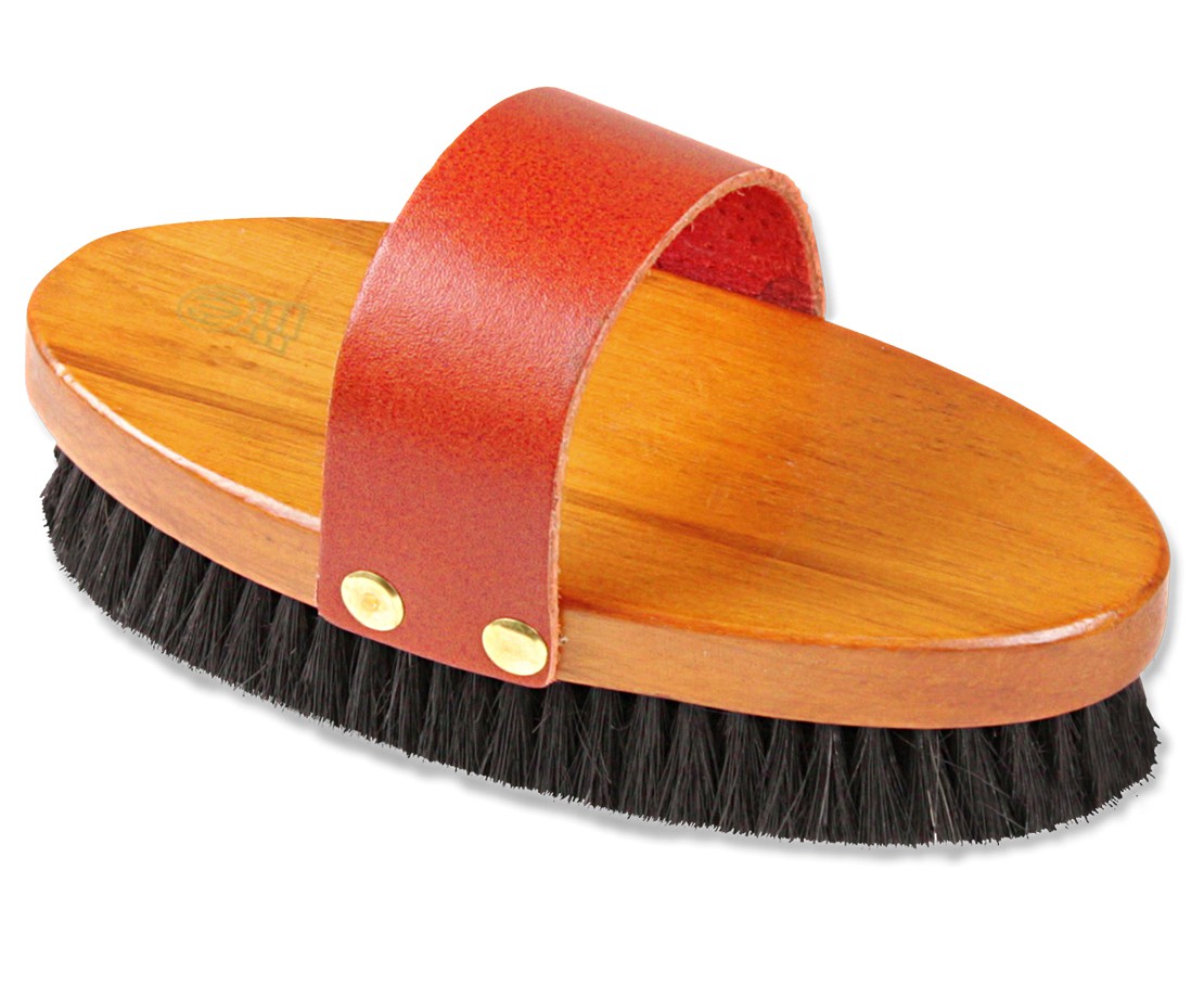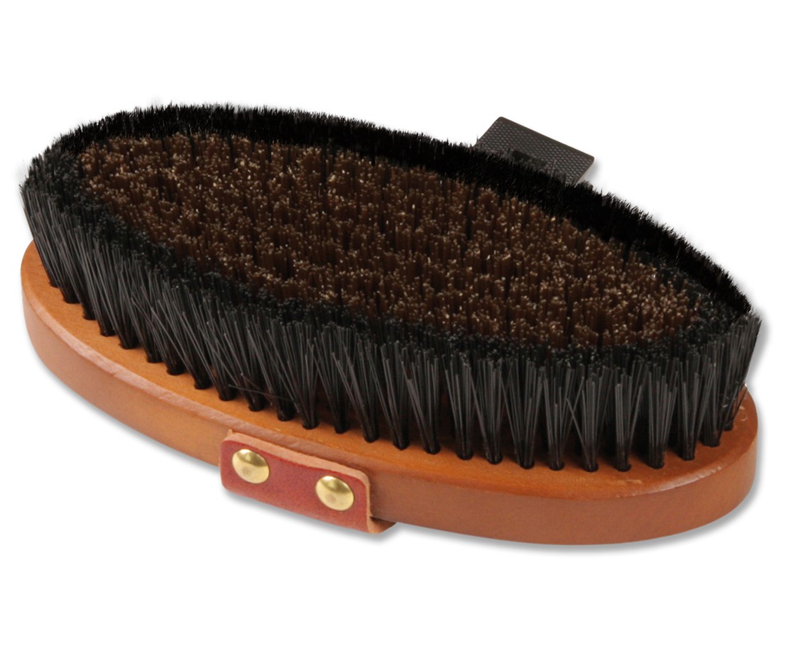Syntetický kartáč s hrubšími tvrdými štětinami, který dobře očistí zablácená a hodně znečištěná místa. Kartáč má dřevěné tělo a kožené poutko.