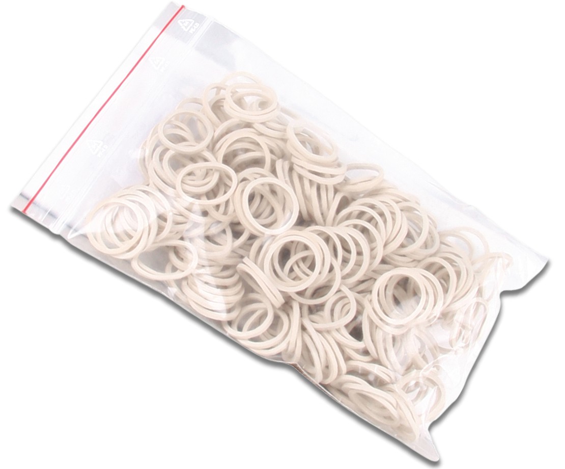 Bílé gumičky k zaplétání hřívy. Balení obsahuje 50 g gumiček.