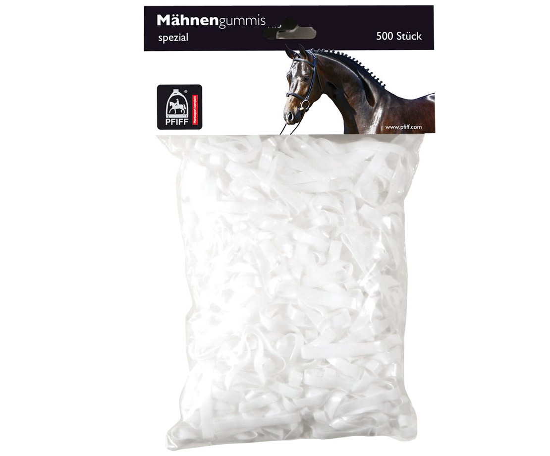 Luxusní gumičky do hřívy PFIFF, extra pružné, silné a široké. Velmi vyniknou v hřívě i v ocase.