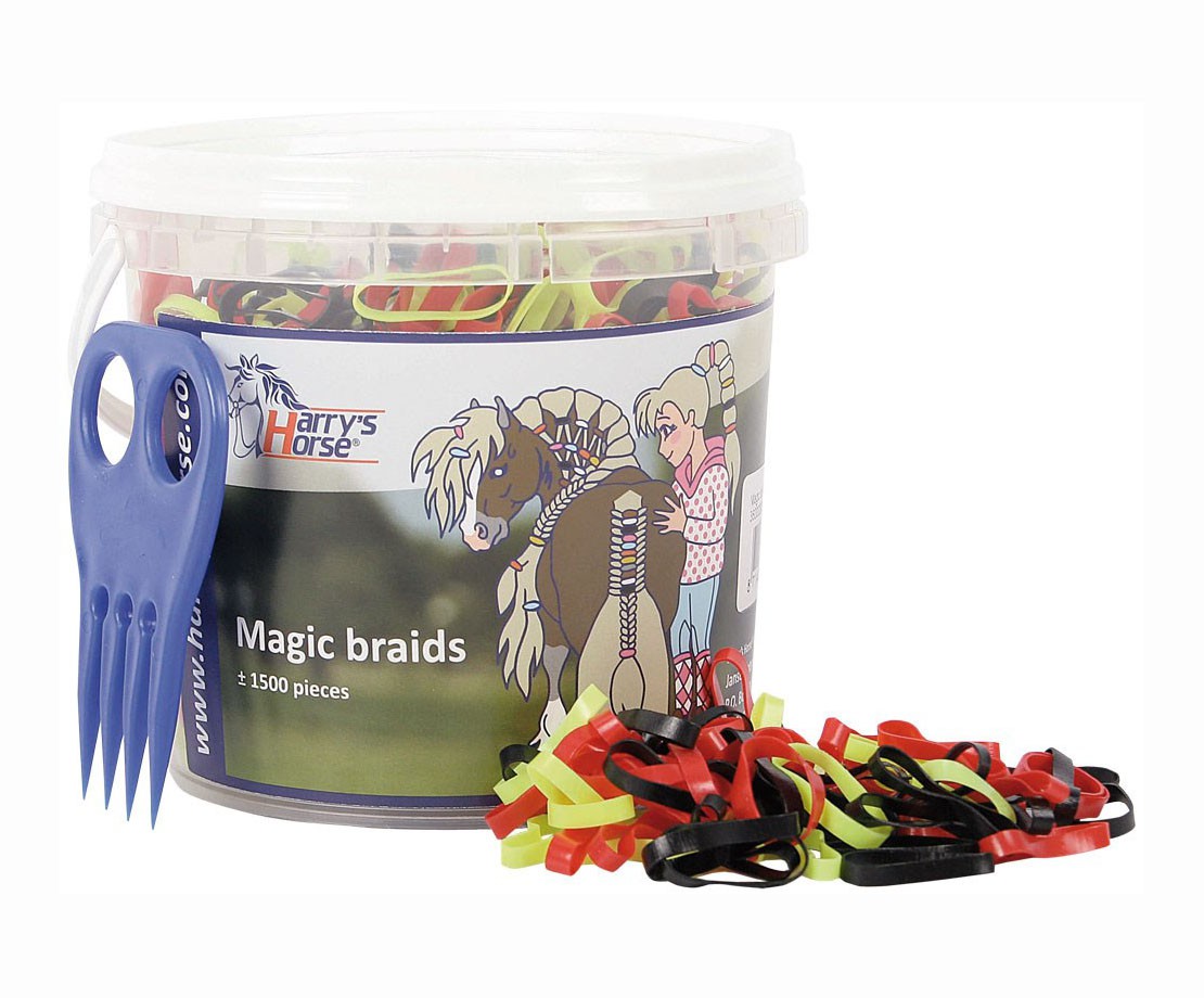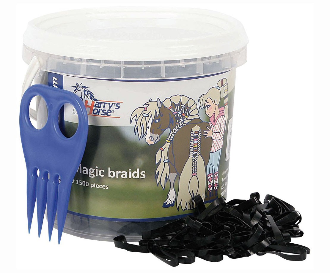 Pevné, ale přitom vysoce elastické gumičky na zaplétání hřívy nebo ocasu. Součástí je hřebínek na zaplétání hřívy.