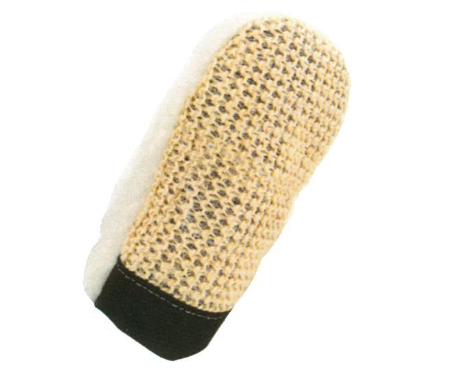 Čistící rukavice vyrobená z přírodního sisalu a vlny. Sisal je vlákno vyráběné z tropické rostliny agáve sisalové, vlákno je velmi odolné proti oděru a pohlcuje vlhkost. Sisalová strana je vhodná k vyhřebelcování koně, k odstranění uvolněných chlupů, prachu a jiných nečistot, vlněná strana je ideální k doleštění srsti.